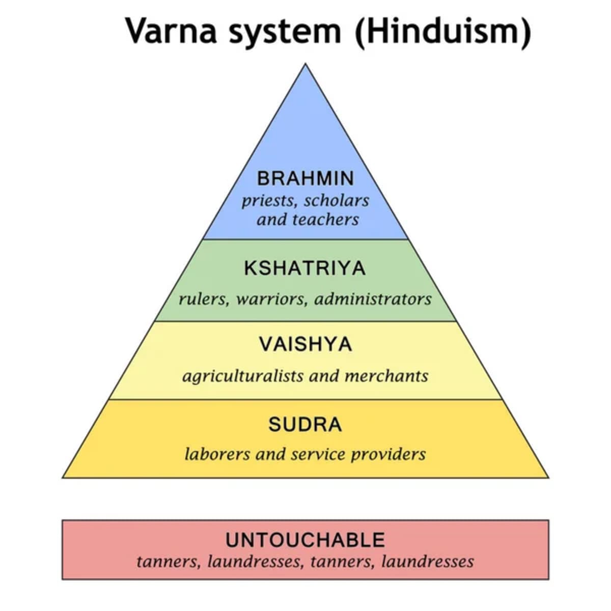 In the Bhagavad Gita (Chapter 4, Verse 13), Lord Krishna explains that he has classified individuals in society into four Varnas based on the admixture of these gunas. These Varnas are Brahmin, Kshatriya, Vaisya, and Sudra.
