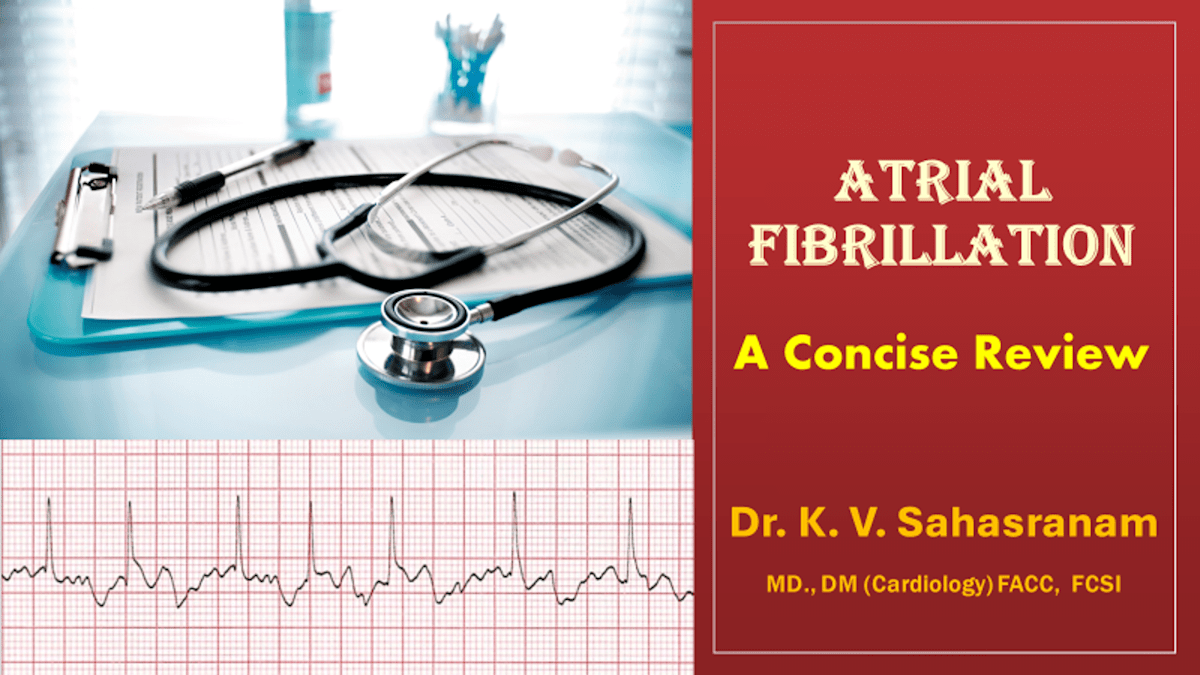 This is a Talk given online to the students of Medvarsity in India on Atrial Fibrillation - A Concise Review in 2023. It covers the Definition, Causes, Features, ECG diagnosis and Treatment of the condition in a rather elaborate 1-hour presentation.